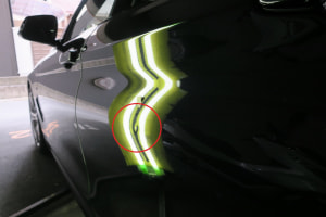 BMW・4シリーズグランクーペ、リアドアの凹みをデントリペアで修理(岐阜) 今回はBMW・4シリーズグランクーペです。 リピーターのお客様です。感謝!! ゆるやかなルーフライン~リアへのデザインが特徴です。 リアドア中央にできた凹み(赤〇)です。 塗装表面にキズが有ります。 少しキズは残りましたが、 凹みも目立たなくなり、キレイにリペア完了です。 無い方が良いですが・・・ また (^^; 何かありましたらご連絡下さい。 ありがとうございました。